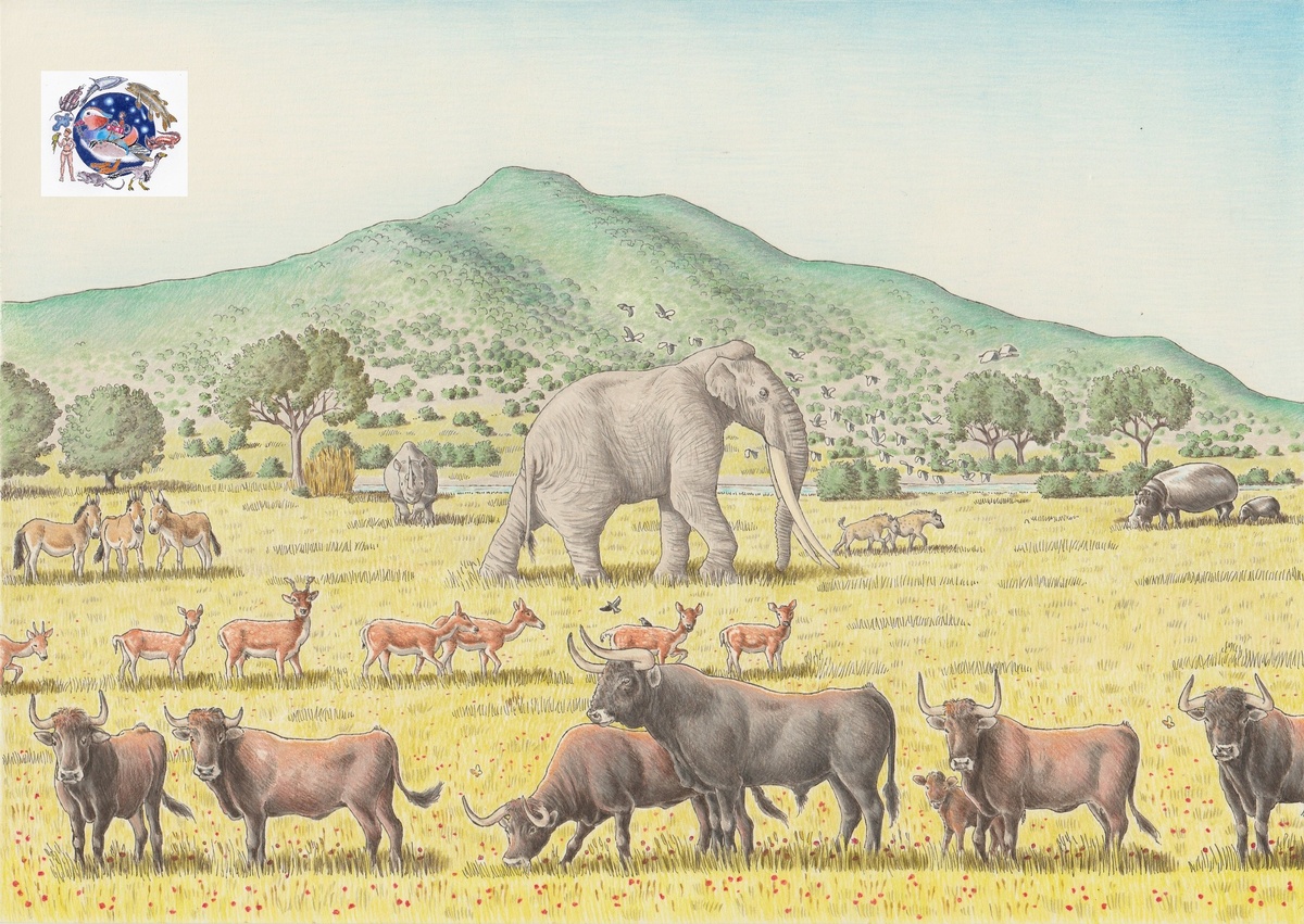 - Тур (Bos primigenius), дикий предок домашнего скота. Средиземноморские формы были значительно меньше своих огромных собратьев из Центральной Европы; тем не менее, они были впечатляющими и опасными для охотников и хищников.