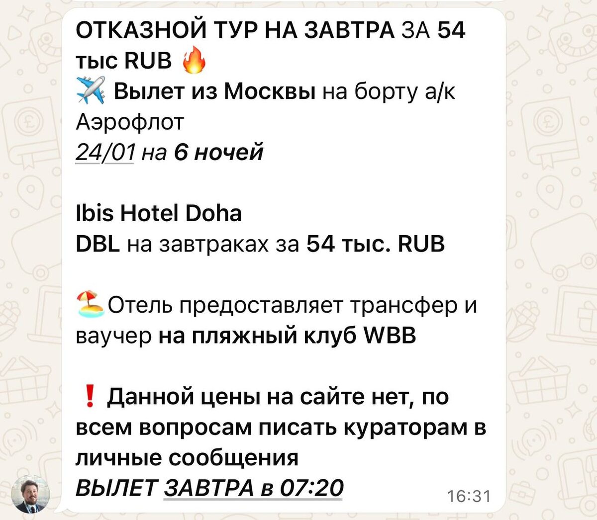 Друзья. Срочное включение. У туроператора отказной тур с вылетом завтра из Москвы