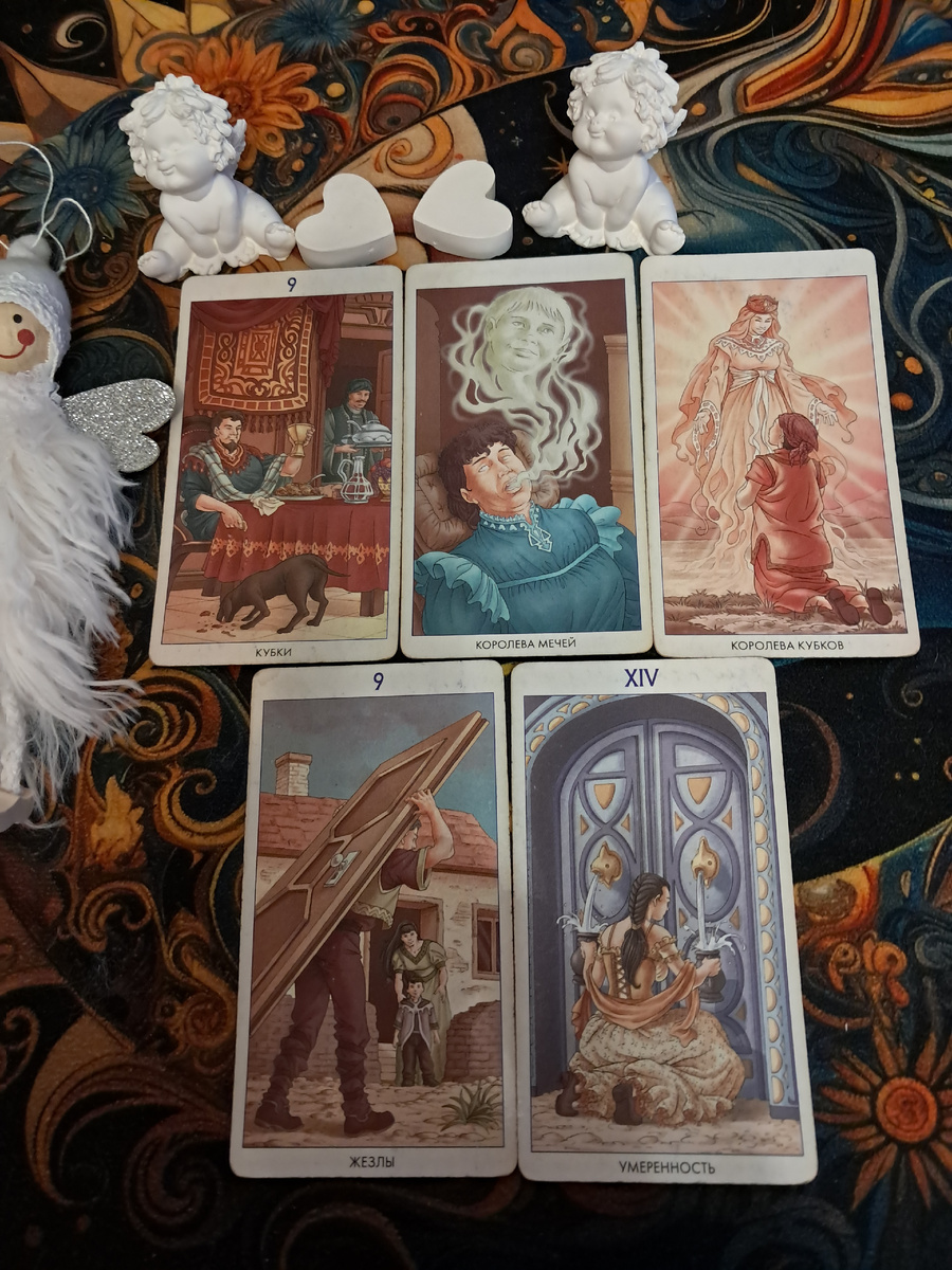 2. Этап 2 (Королева Мечей + Королева Кубков): Вы начинаете осваивать два полюса силы. В одних ситуациях вам нужно надеть «корону Мечей» — быть объективной, провести чёткие границы, сказать «нет». В других — проявиться как «Королева Кубков»: глубоко чувствовать, поддерживать, творить уют и доверять интуиции.