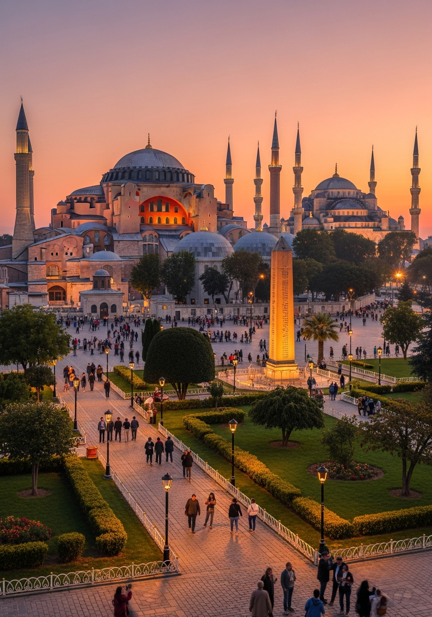 Площадь Султанахмет — сердце исторического Стамбула, где на каждом шагу оживает история трех великих империй. Здесь на месте древнего ипподрома, где кипели страсти гонок на колесницах, сегодня стоят античные обелиски, а вокруг возвышаются главные святыни города.