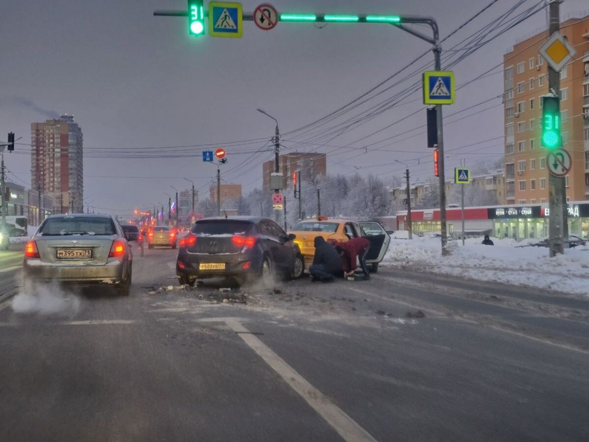 В Туле в районе дома №141 на проспекте Ленина произошло ДТП с участием такси - кадры прислали читатели. Иномарка «Хендай» влетела в желтый «Фольксваген». Напомним, что утром на перекрестке улиц Кирова и Каракозова ДТП с участием большегруза также затруднило движение.