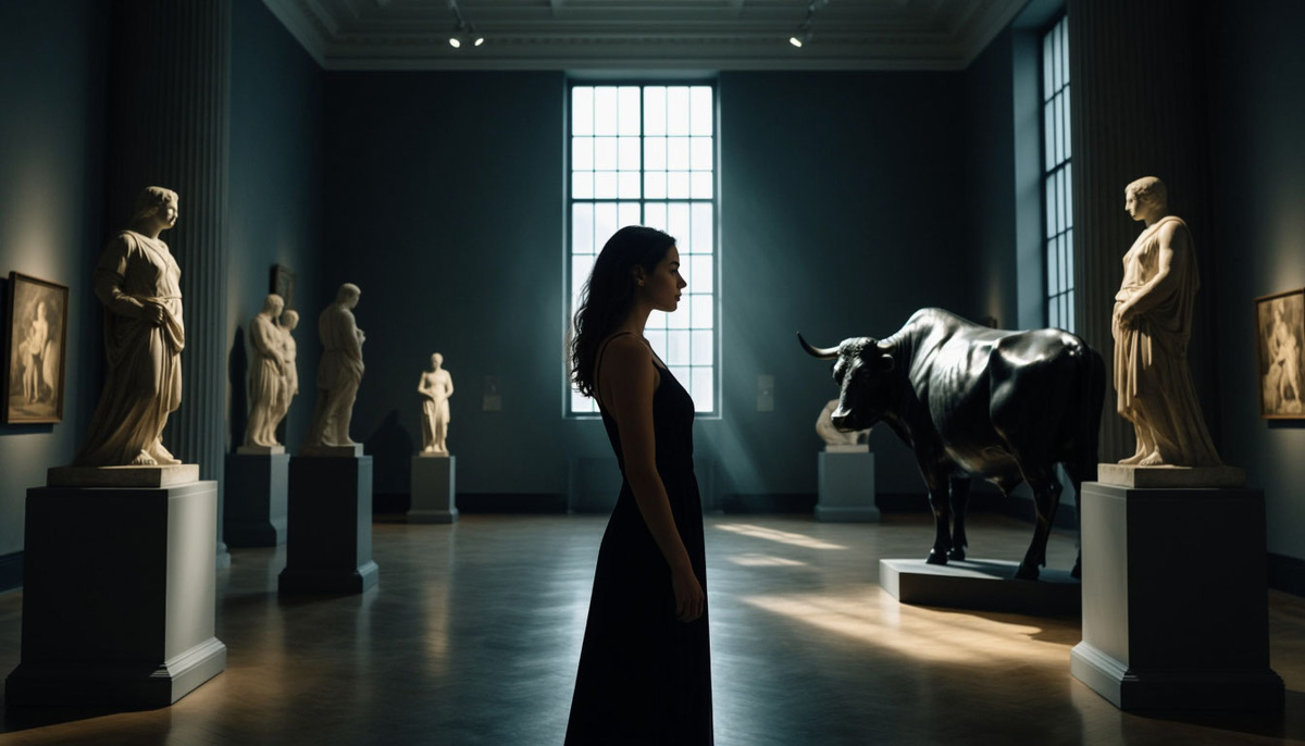 Она шла по парадной анфиладе, её шаги отдавались гулким эхом под сводами. В зале архаики на неё смотрели безглазыми орбитами куросы — юноши, застывшие в шаге в вечность. В зале классики Афродита Книдская отворачивала голову в мраморном стыде. В полумраке зала эллинизма её ждала гипсовая реплика скульптурной группы «Похищение Европы». Работа учеников, не идеальная, не ценная с художественной точки зрения. Но именно сюда её почему-то тянуло всё чаще в последние месяцы.