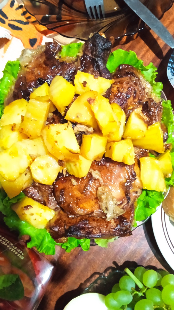 Увидела картошку на фото🤭. Это осталась лишняя от салата. Я ее запекла с мясом. Просто добавила в конце готовки.