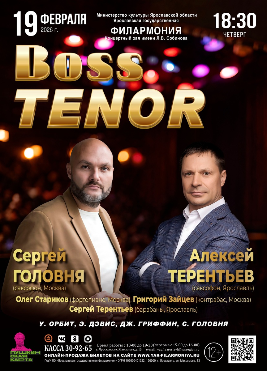 в обзор Michael G. Nastos рейтинга Allmusic, а также повлиял на музыкантов разных поколений, в том числе и ведущих Российских музыкантов. 19 февраля 2026 г. с программой "Boss Tenor" на сцене выступят: 👏 Алексей Терентьев (саксофон, Ярославль) Квартет Сергея Головни (Москва): 👏 Сергей Головня (саксофон) 👏 Олег Стариков (фортепиано) 👏 Григорий Зайцев (контрабас) 👏 Сергей Терентьев (барабаны) 🎶 В основу программы легли пьесы с пластинки «Orbit», блюзы квинтета Эдди Лакджо Девиса и Джонни Гриффина, пьесы Сергея Головни. Выбирайте ВАШЕ кресло 👉https://quicktickets.ru/yaroslavl-filarmoniya/s341