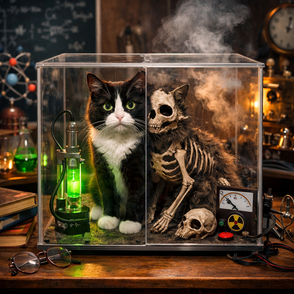 Шрёдингер придумал этот пример не как описание реальности, а как reductio ad absurdum (доведение до абсурда) наивного понимания квантовой механики. Он указывал пальцем на проблему "коллапса волновой функции": что такое "измерение" и почему оно магическим образом превращает вероятности в факты? Где тот волшебный рубеж, на котором суперпозиция исчезает?