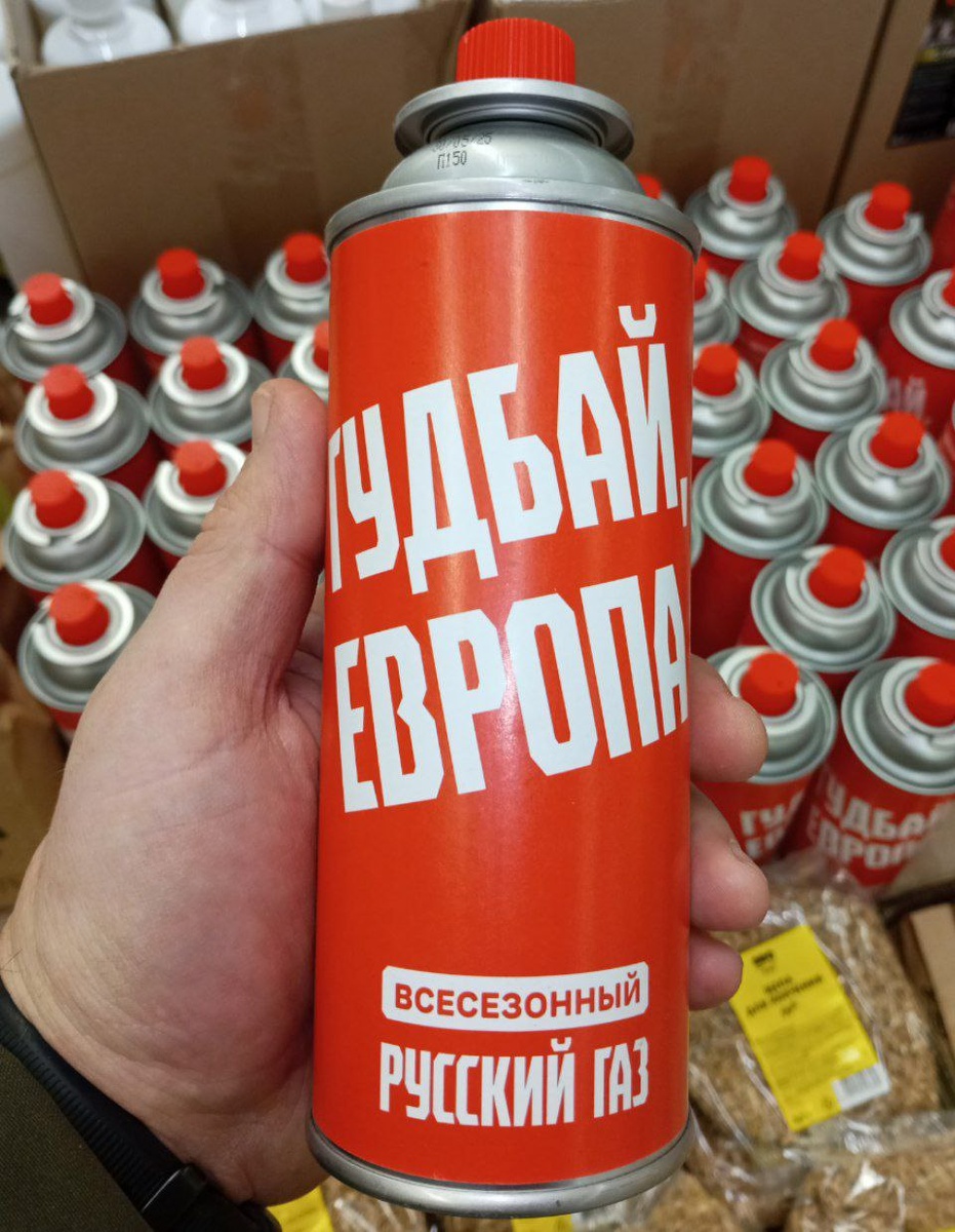 Кстати по поводу приготовления еды. Собирая по просьбам разные нужности в очередную поездку, нашли вот это. Не секрет, что газ в баллонах незаменимая вещь в "автономке" и полевых условиях. А тут ещё такой слоган. А может предсказание. Тогда по-любому должен жарче гореть. Потом узнаем у парней. 😏