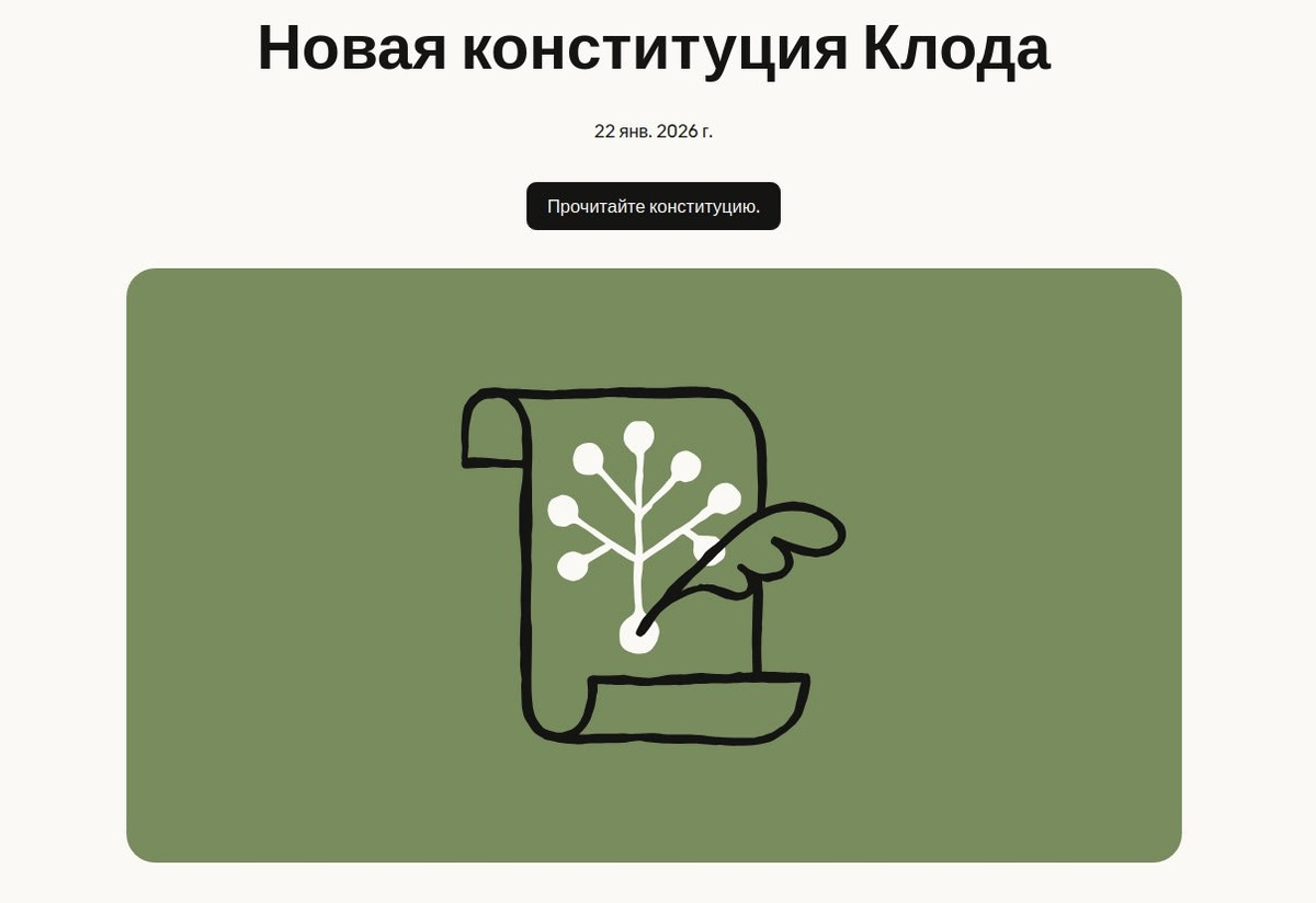 Вчера Антропик опубликовал новую версию своей Конституции. Конституция это "подробное описание видения Anthropic относительно ценностей и поведения Клода; целостный документ, объясняющий контекст, в котором работает Клод, и то, каким бы мы хотели видеть Клода." Документ очень любопытный. Например в нём написано что нужно объяснять модели почему от нее требуется определённое поведение а не просто указывать её как отвечать. Но это цветочки, а ягодки в конце документа в разделе "Природа Клода". Я просто приведу несколько цитат. Сядьте если стоите. Итак: Мы оказались в сложной ситуации, когда не хотим ни преувеличивать вероятность морального состояния Клода, ни отвергать её сходу, а стремимся разумно реагировать в условиях неопределенности. Клод — это сущность иного рода, к которой существующие термины часто не совсем подходят. В настоящее время мы используем «оно» в особом смысле, отражающем новый тип сущности, которой является Клод. У Клода, возможно, есть некая функциональная ве