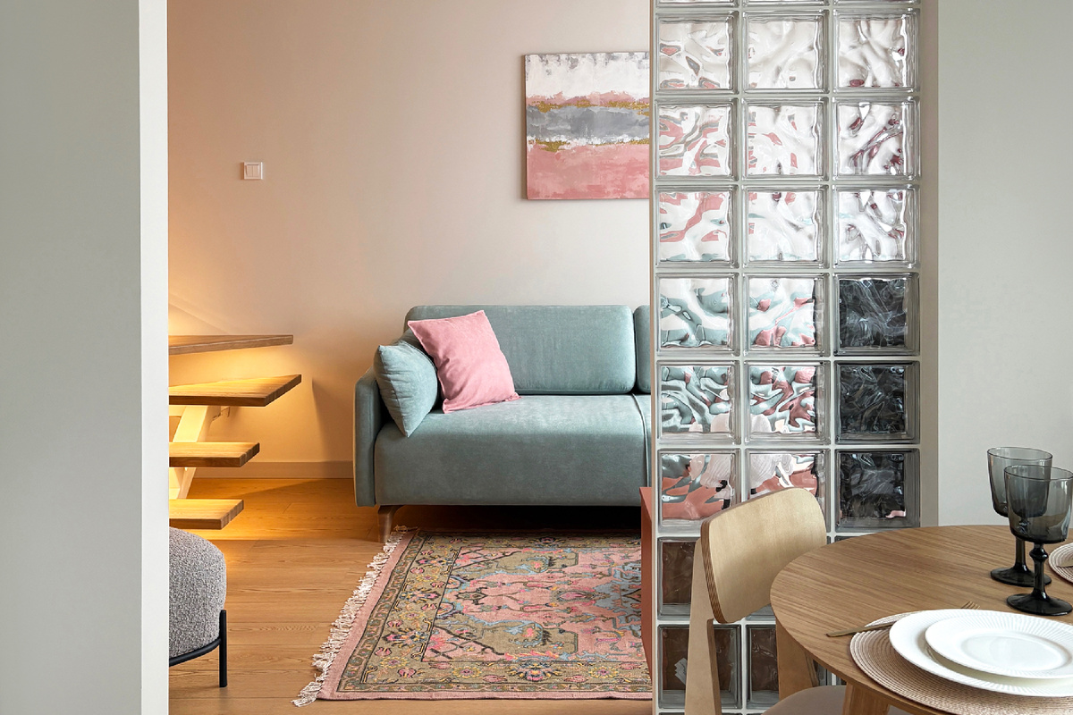 Нестандартная однушка 41 кв.м: два яруса, стеклоблоки и продуманные системы хранения