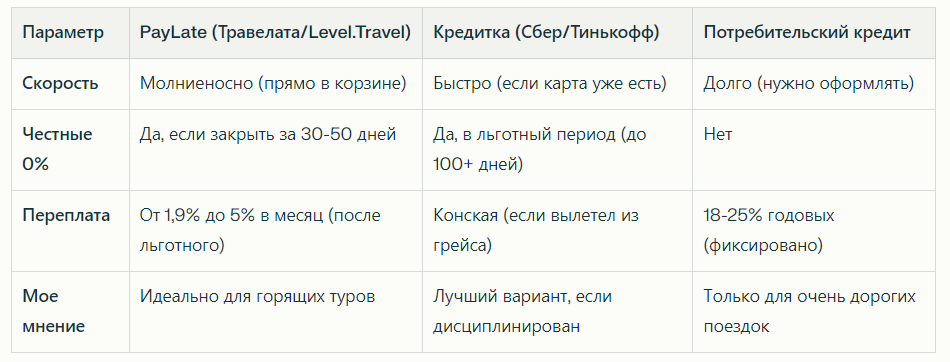 Лично я для себя выбрал схему с Травелатой. У них приложение самое вменяемое, и видно график платежей сразу. Но сравнивать всегда полезно. Главное — включайте голову, а не только эмоции от фоток с пальмами.