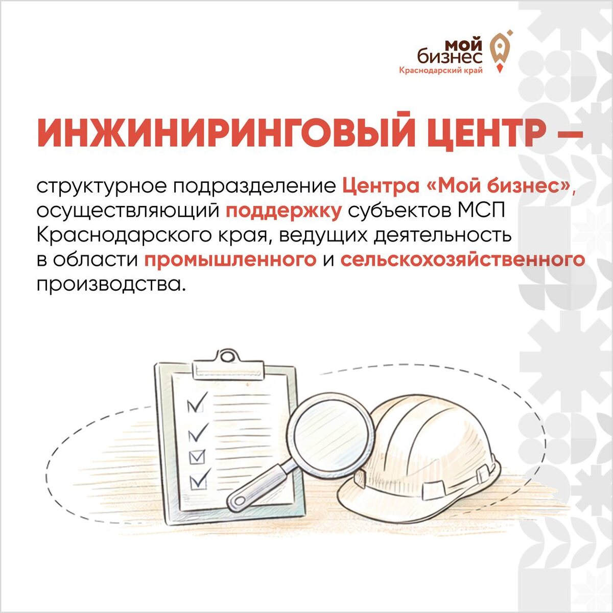 🚀 Одно из структурных подразделений Центра «Мой бизнес» помогает предпринимателям развивать производство, улучшать процессы и внедрять современные решения для эффективного и безопасного бизнеса. Какие услуги предоставляет центр и на каких условиях они доступны — рассказываем в карточках 👆 А вы уже пользовались услугами инжинирингового центра? Делитесь опытом в комментариях ✍️ 📌 Подробнее о проектах Центра «Мой бизнес» и мерах государственной поддержки для предпринимателей Краснодарского края можно узнать на сайте. 👉 Наш канал в МАХ