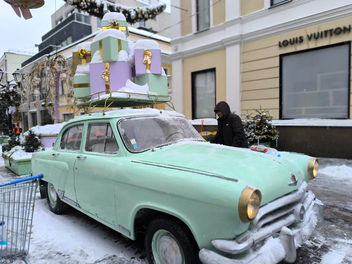 Приветствую вас, дорогие друзья, на страницах моего скромного блога! И сегодня предлагаю вам прогуляться по одной из площадок фестиваля "Путешествие в Рождество" -- по новогоднему Столешникову переулку. Мы гуляли со стороны Тверской улицы и началом нашей прогулки по Столешникову переулку стала вот такая инсталляция из старой отечественной машины, нагруженной коробками с подарками. Это что-то новенькое в новогоднем дизайне московских улиц. Что-то зефирное. наверное впереди нас ожидает страна сладостей, предположила я, и не ошиблась. Отличительной особенностью дизайна именно этой площадки стало особенное внимание к оформлению фонарных столбов красивыми новогодними венками, украшенных новогодними шариками и бантами. Смотрится так, как будто в Нарнию попали. Ёлочки украшены шариками мятного, розового и золотистого цветов и бархатными бантами розового и мятного цвета. Здесь мы видим лаунж зону со скамейками для отдыха, отгороженную от переулка с потоком гостей нарядными ёлочками. Внутри пр