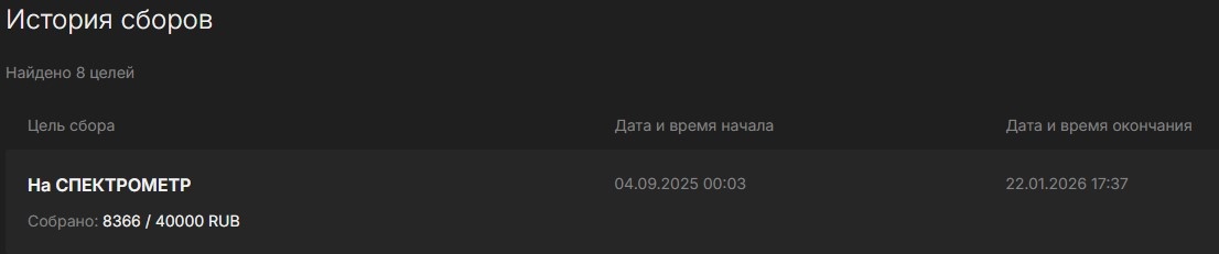 ! Вчера закончился сбор средств на спектрометр для новых радиоактивных исследований. Я очень впечатлён и благодарен Вам за помощь и участие. Ваш вклад в приобретение спектрометра составил 15000 рублей. В скриншоте указана сумма полученная через сервис Donation Alerts, а часть суммы была перечислена напрямую на карту. Огромное спасибо: Марине Фадеевой Галине Сухоручкиной Антону (camnerezus) Денису Фахретдинову (Ютюб канал "Den Stalk") Станиславу (Было Дело) Владимиру (Шестой Химкинский Лесничий)