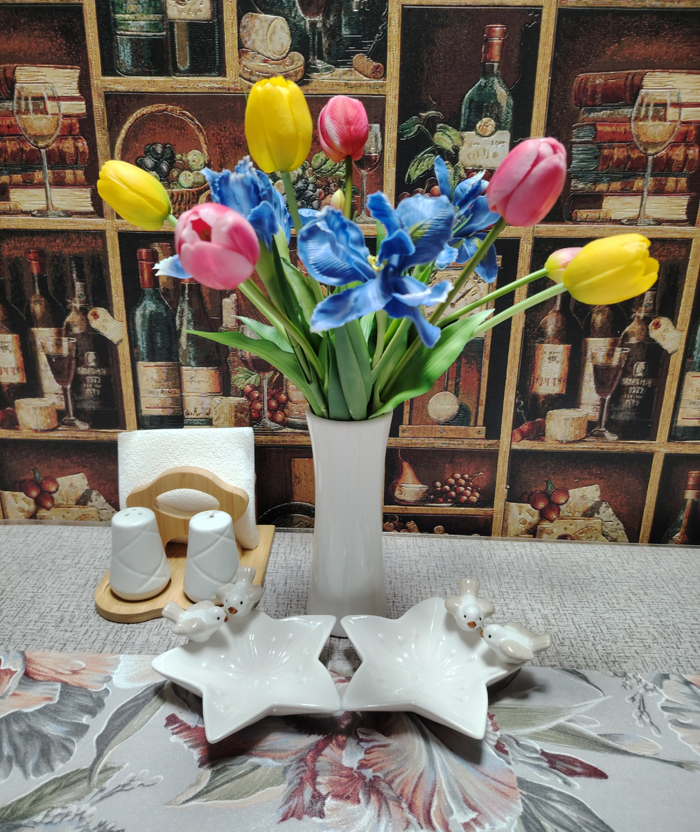 На стол вернула обычную дорожку и поставила в вазу новый букетик. Захотелось мне уже весны, ярких красок...