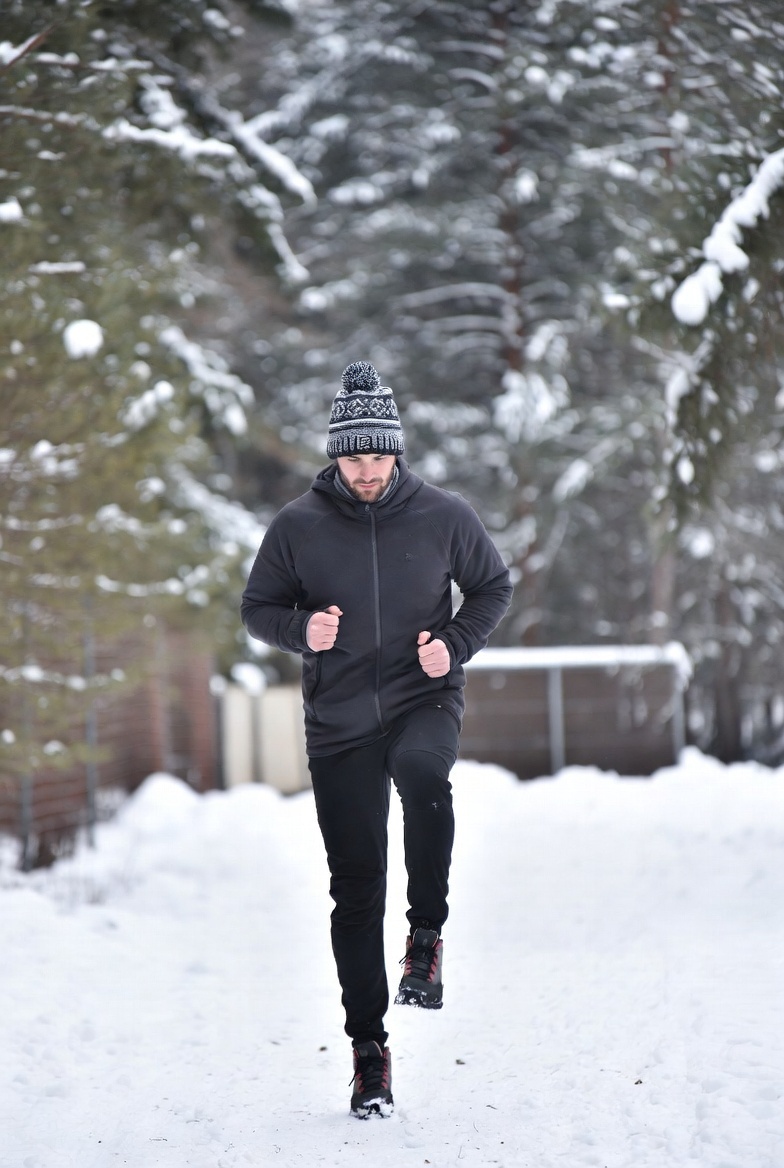 - Развитие мышечной стабилизации и баланса — бег по снегу/льду активирует больше мелких мышц, улучшает координацию.