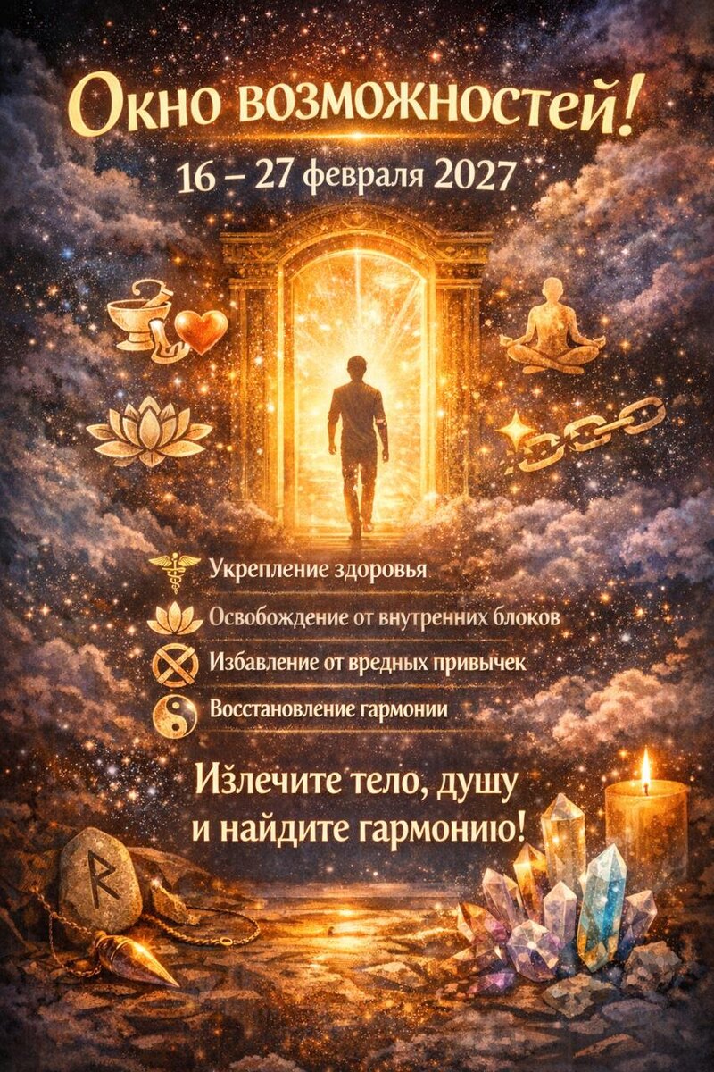 ! ✨ Открылось особое общее окно возможностей — 📅 с 16 по 27 февраля 2027 года. Это мощный период, направленный на глубинную работу с собой: • укрепление физического здоровья • освобождение от внутренних и душевных блоков • проработка пороков и вредных привычек • восстановление внутренней гармонии Это окно подойдёт тем, кто чувствует, что пришло время понять и изменить свое физическое и душевное здоровье. 🎥 Совсем скоро выйдет видео, где я расскажу о сути и возможностях этого периода. 📝 Записываться можно уже сейчас. Как и всегда, работа возможна с руной или без руны — формат подбирается индивидуально под ваш запрос. ✨ Если внутри есть отклик — значит, это не случайно ✨ #исцеление #трансформация #внутренняягармония