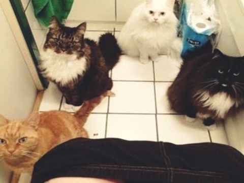 Привычка домашних кошек сопровождать хозяина в столь важное и уединённое место как туалет, уже давно стала самым настоящим анекдотом и поводом для создания забавных картинок и комиксов.