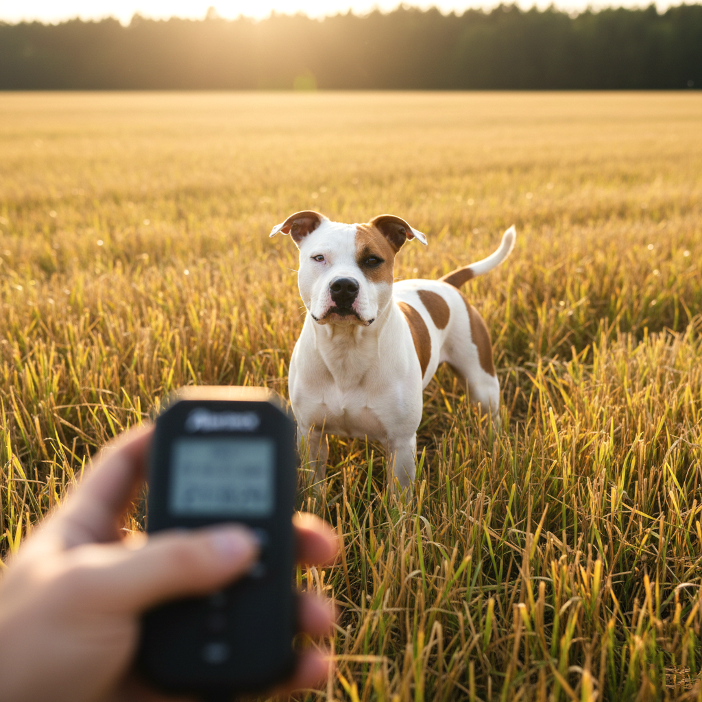 Мила — амстафф, четыре года. Это собака со своим характером и огромным запасом энергии. В какой-то момент я заметил: на больших пространствах голос — инструмент ненадежный. Он теряется в ветре, звучит по-разному в зависимости от усталости, да и просто орать на всю округу — удовольствие сомнительное.