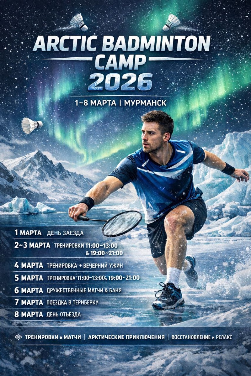 Друзья, начинаем приём заявок на Мурманск. Что же нас ждёт в столице Арктики?: - тёплая атмосфера и общение с единомышленниками❤️ - неделя мощных тренировок с разбором технических элементов и игровых моментов 🏸 - арктическая кухня 😋 - поездка в Териберку🌊❄️ Заявка тут Все детали при получении заявки высылаем на почту. До встречи, друзья! #академияМалькова #сборыакадемии #мурманск2026
