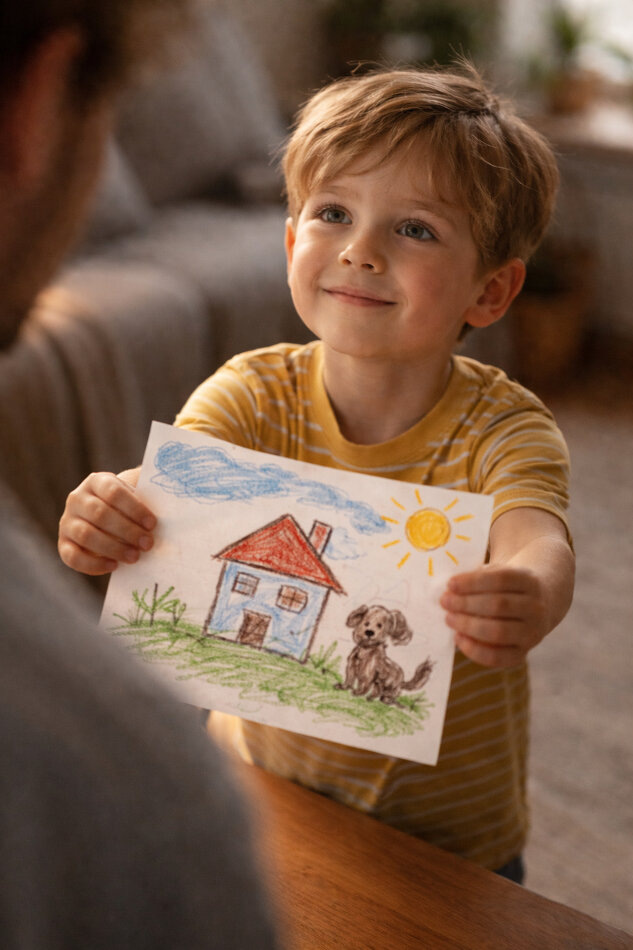 Представьте: ребёнок приносит рисунок. На листе — неровный дом, большая собака, солнце в углу. Он тянет его взрослому с тихой надеждой: «Скажи, что я есть, что со мной и с моим миром всё нормально». Взрослый смотрит и говорит: «Дом кривой, собака как корова, давай покажу, как правильно». В этот момент разрушается не художественный талант, а связь: «Мой взгляд на мир и мои попытки — неверны. Я сам — какой‑то не такой». Если такие сцены повторяются, внутри закрепляется правило: любовь и уважение получают только те, кто не ошибается.