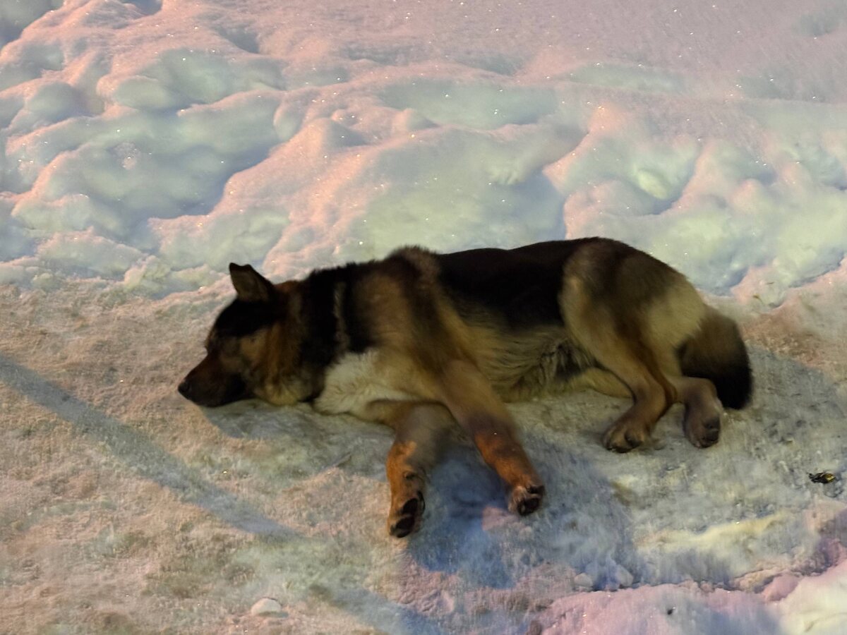 Второй день на одном и том же месте на улице лежит собака. Недалеко от многоуровневой парковки Ногинское ш. 36 корп 4.