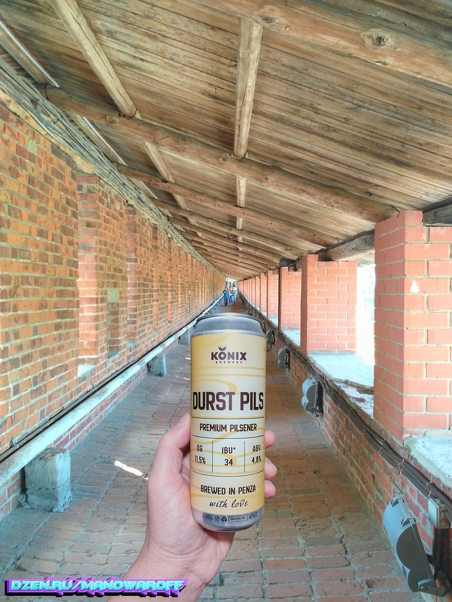 В прошлом году пивоварня Konix Brewery представила свое новое пиво в стиле пилснер - Durst Pils (с немецкого переводится как "жажда"). Я такое люблю, так что без раздумий взял на пробу. Пилс, как видите, даже премиальный, а не какой-то там. Точно не зря взял! Посмотрим, что нам расскажут об этой премиальности пивовары: Классический немецкий пилснер сваренный на немецком солоде и хмеле Hersbruсker. Которые создают соломенный цвет и яркий цветочно-хмелевой аромат с нотками меда. Легкое солодовое тело и уверенная горечь в 34 единицы. Оставляющая в послевкусие приятную горчинку. Звучит вкусно. Попробуем. Банку я открыл, когда пенному оставалось чуть больше месяца до окончания срока годности, который составляет 240 суток при комнатной температуре. ТТХ: Пиво прозрачное, пены больше среднего, но она не особо стойкая. В аромате травянистый хмель. Во вкусе на мгновение появляется не сладкий солод, а затем его заглушает заметная травянистая горечь, остающаяся в довольно длительном сухом послевк