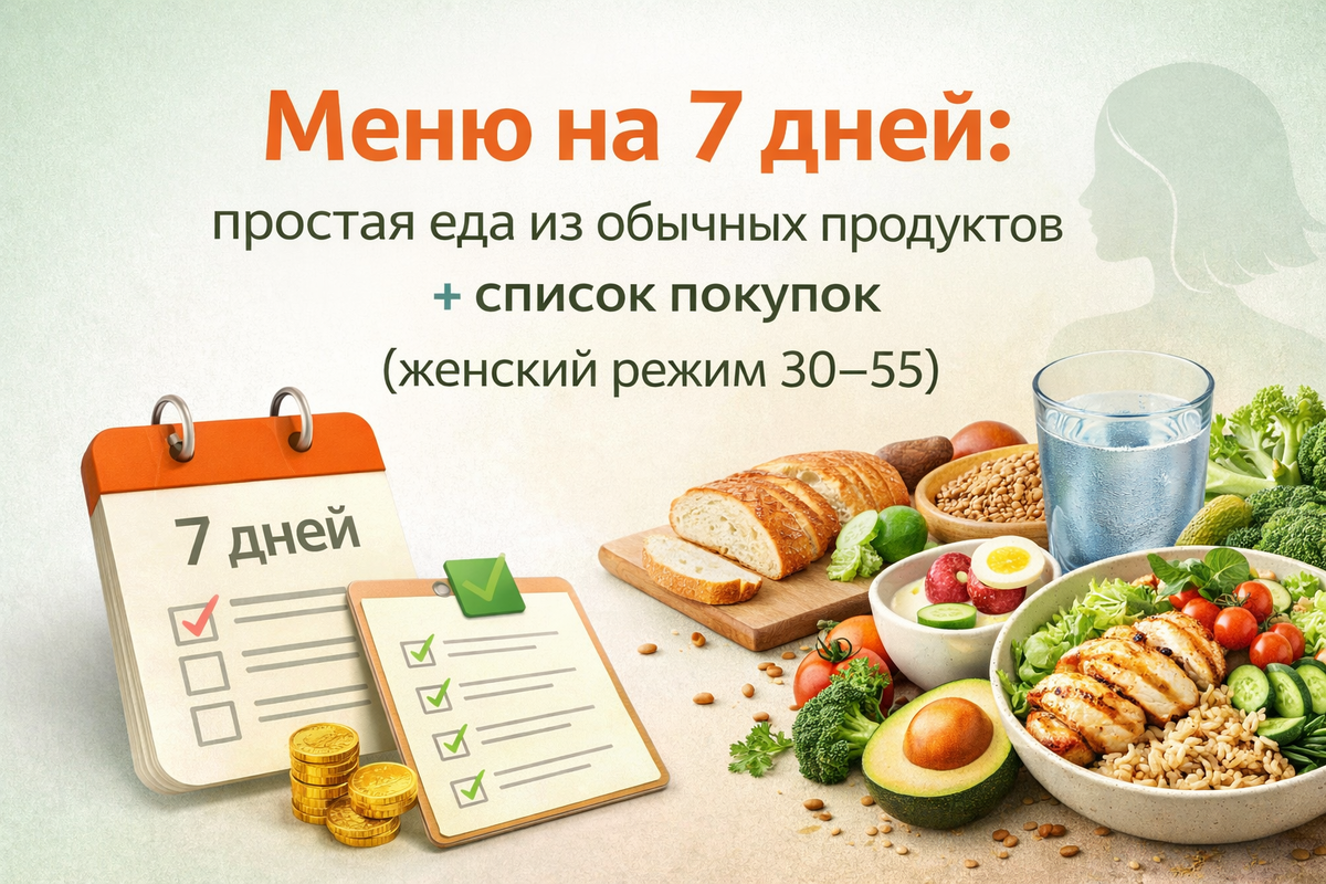 Здесь — меню на 7 дней из обычных продуктов: сытно, недорого, без фанатизма.