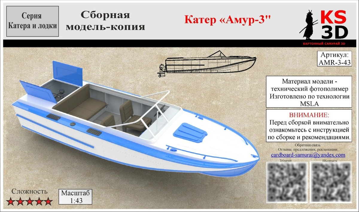 "Картонный самурай"из Москвы выпустила на 3Dпринтере модель катера "Амур-3" теперь и в масштабе 1/43.