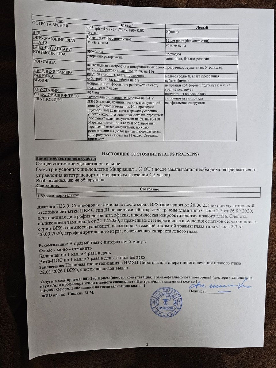 . У меня назначена 41 операция на 29 января 2026 года в Москве больница им. Пирогова. Почему в выписки 22.01.2026? Пришлось перенести праздники анализы сделать не получилось, платно нет возможности. Перенесли на 29.01.2026 Хотел бы обратиться за помощью, кто чем сможет на билеты и лекарства! Все лекарства которые идут в офтальмологии у меня не входят в перечень бесплатных. Проезд на поездку тоже дорогой хоть и скидка 40% . Мне ехать на операцию и 3 раза на осмотр туда и обратно ,получается 6 и плюс сопровождение. Одному передвигаться сложно без зрения! Все чеки и прочее я выложу сюда. Сейчас собираю анализы тоже половину платно хотя живу в городе ,нет оборудования. Оставили жалобу в минздрав. Всем спасибо и крепкого здоровья. Если есть возможность можно распространить !❤️ ✅️Мой номер для связи и перевода 👇 8-930-222-61-69 Сбербанк Валерий Сергеевич С. Коментарий : помощь на лечение ! ВСЕМ ОГРОМНОЕ СПАСИБО . ДОБАВЛЯЮ ОТЧЕТЫ В КОМЕНТАРИИ ! ❤️❤️❤️❤️❤️❤️❤️❤️❤️❤️ Собрано 36 444 из 3