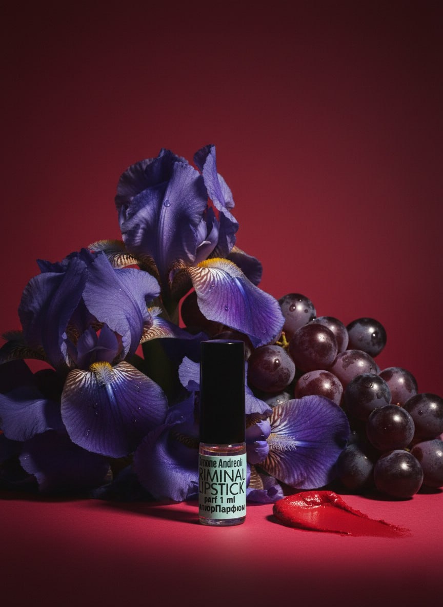 Виноградно-ирисовая красная помада в "Criminal Lipstick" уравновешена шершавыми древесными полутонами: аромат остается кинематографическим и