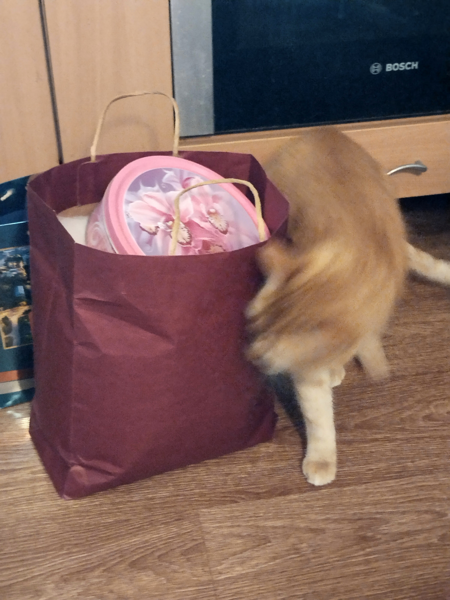 Фото встречи нас с Ариной отсутствует, зато есть фото встречи Фыни с дарами! Как он вился вокруг пакетов, как он крутился - м! 😁 Впрочем, см. выше.