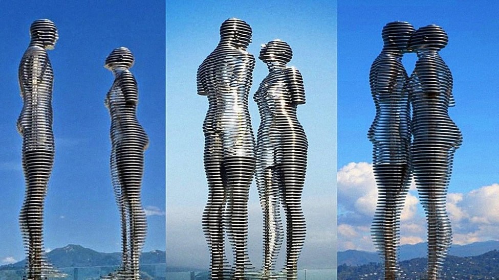 набережной города-курорта Батуми, художницы и архитектора Тамары Квеситадзе о трагической судьбе азербайджанца-мусульманина Али хана Ширваншира и христианки, грузинской княжны Нино Кипиани. Семиметровые скульптуры примечательны тем, что каждый вечер фигуры Али и Нино медленно двигаются навстречу друг другу, меняя положение каждые десять минут. До тех пор, пока не встретятся и не сольются в одно целое. После этого начинается обратный процесс, а затем всё по новой. 📱 Телеграм: https://dzen.ru/id/651983a11cf2387b25169947