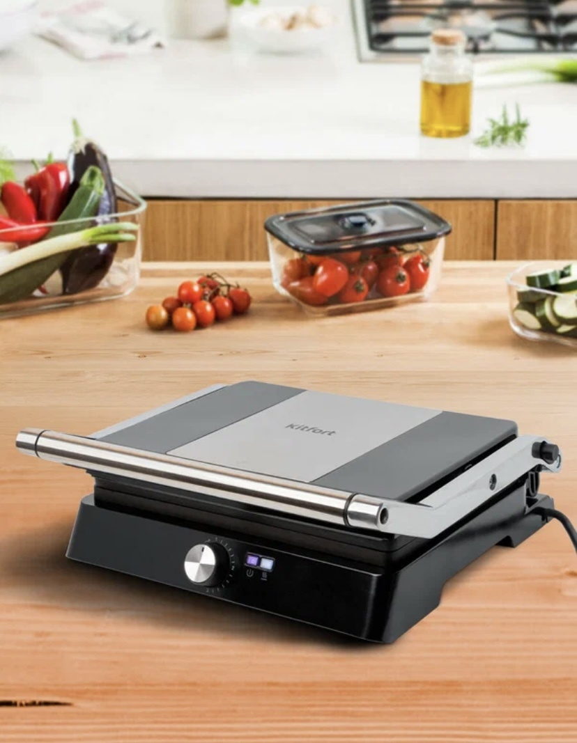 · Тип (Контактный): Закрытые грили с двумя нагревательными панелями готовят продукты с обеих сторон одновременно. Это быстрее, равномернее и позволяет готовить с минимальным количеством масла, так как жир стекает в поддон.