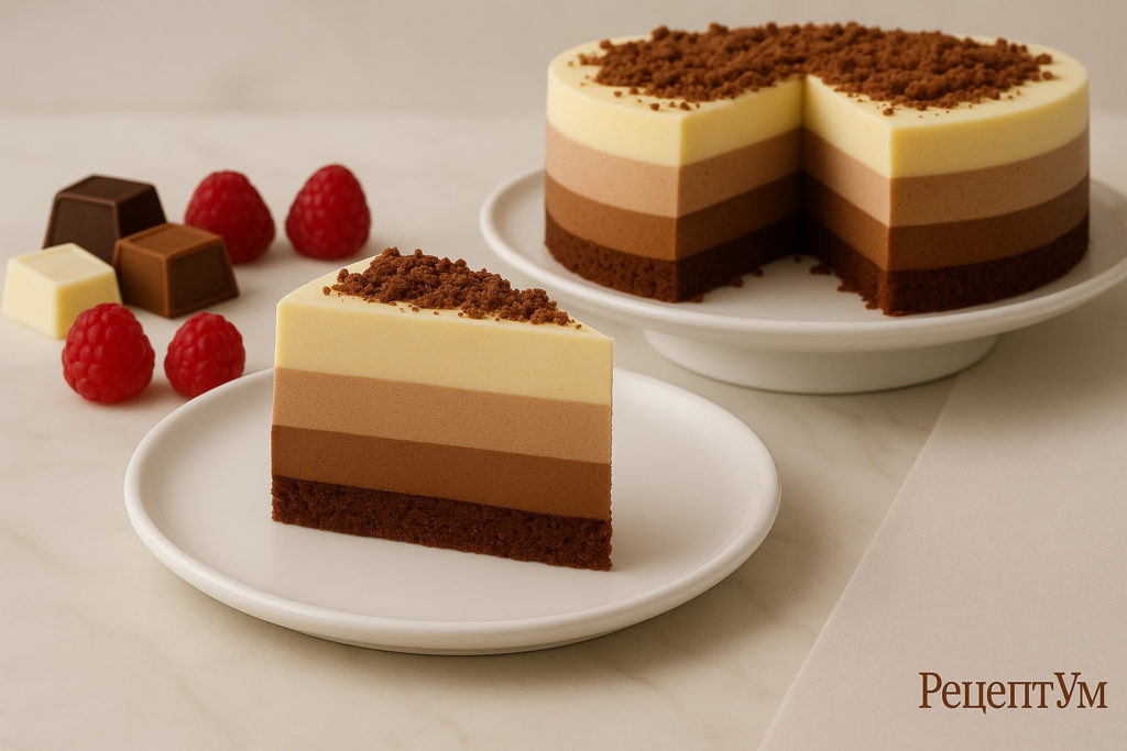 Листаю рецепты в интернете и вижу: торт «Три шоколада». Фото завораживает — три идеально ровных слоя мусса: тёмный, молочный, белый. Выглядит сложно, но отзывы обнадёживают: «Проще, чем кажется!»