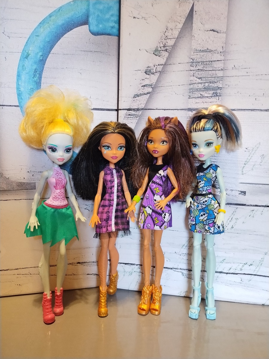 Всем доброго дня! Завершая (пока) тему чертовщинки и шокирующей экзотики, хочу показать свою небольшую коллекцию кукол Монстер Хай. У меня их немного, но все-таки небольшая компания собралась. Опять же- попались они мне все случайно, можно сказать даром, в общем пакете сдругими куклами- и вначале я хотела их вернуть назад в магазин. Дети и подростки очень любят эту линейку. Я же к ней равнодушна. Но- как уникальный в своем роде экземпляр, редкую особенную линейку кукол -я решила их тоже себе оставить, как несомненно яркую и самобытную часть своей коллекции. Ранее я уже представила уважаемой публике одну из самых ярких представительниц этой линейки - куклу Френки. А сейчас вот покажу вам ее подружек. Конечно, Френки не может жить одна, ей нужна компания своих. Я пока что не знаю названия и имени каждой из этих кукол. Если кто узнает и назовет - буду премного благодарна. Эти куколки еще не самые страшные, есть реально очень неприятные экземпляры в этой линейке. Таких я не оставляю себе.