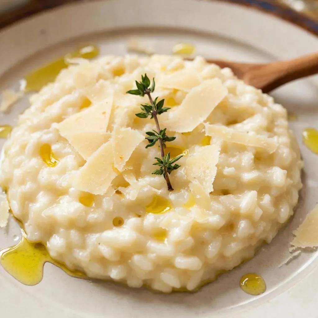 8. Подача: Разложите ризотто по тарелкам, украсив сверху свежими листиками зелени.