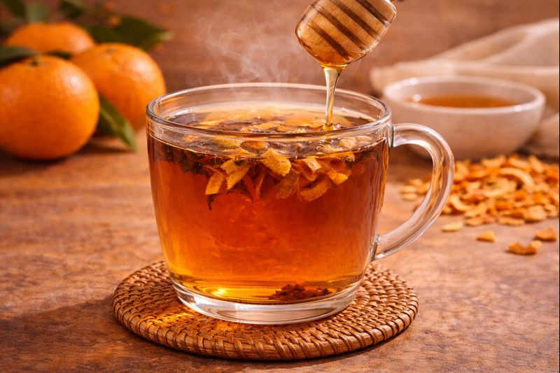 Делаю чай — но не обычный. Добавляю одну сухую вещь, и эффект совсем другой. Согревает. Проясняет голову. Без скачков давления. Использую именно сушёную мандариновую цедру, не свежую.