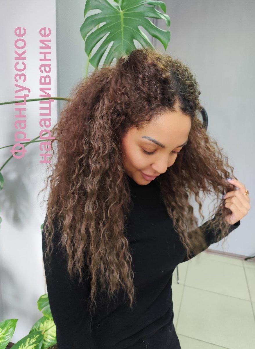 😎 ❣Французское наращивание❣ Суть заключается в плетении тонких брейдов по голове. Далее к брейдам прикрепляется материал (Материал и способы крепления разнообразны)