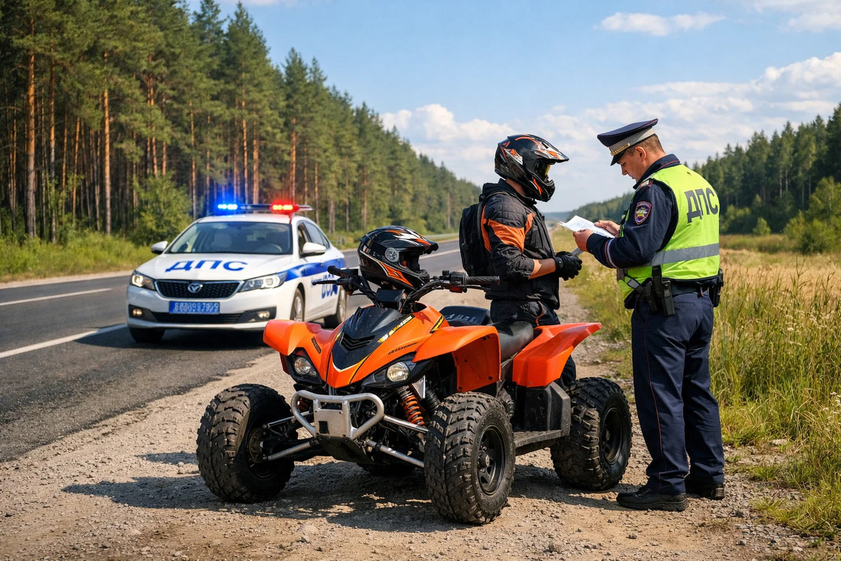 Здесь всё строго. Квадроцикл приравнивается к трактору, поэтому на него распространяются требования ПДД. Обязательны права, регистрация, ОСАГО, светотехника. Если чего-то нет — штраф.