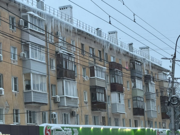 А между тем огромные сосульки свисают с крыш большинства жилых домов на улицах Гагарина и Весенней.