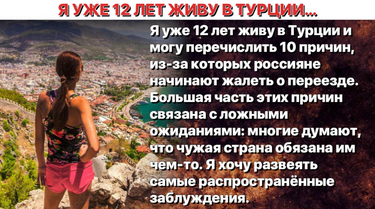 Однако за привлекательной оболочкой нередко скрываются неожиданные реалии: об этом широкой публике рассказала наша дама-блогер, переехавшая в Турцию около 12 лет назад. Она развенчала все популярные мифы о сказочной жизни в чужой стране и приоткрыла завесу над теми самыми "подводными камнями", о которых обычно молчат в рекламных буклетах.