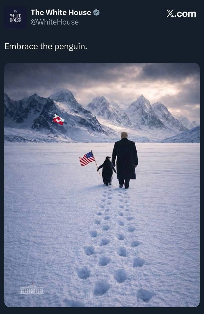 Белый дом на своей странице в сети X только что опубликовал коллаж под названием «Обними пингвина».