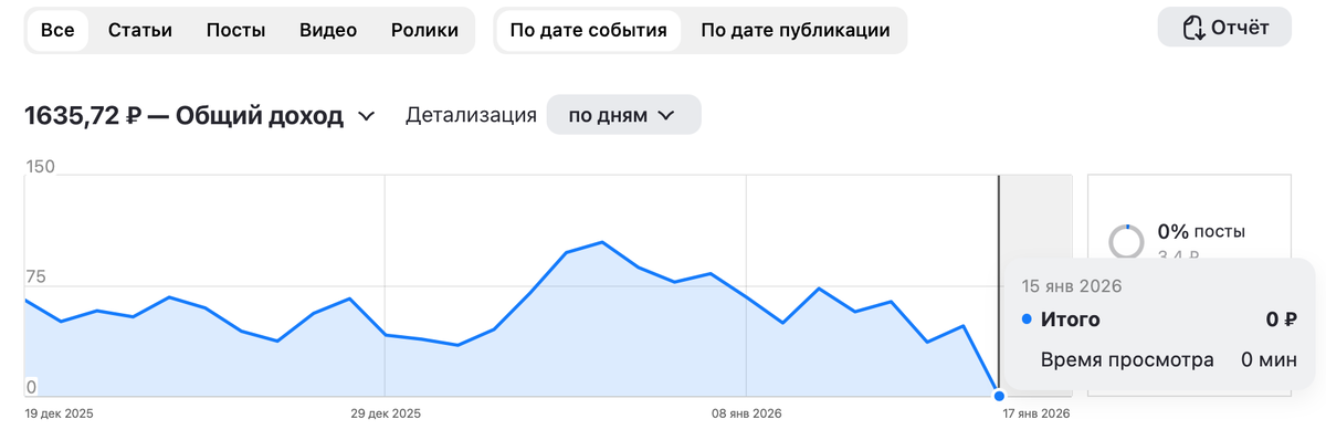 Во-вторых, компенсацию вам рассчитают и начислят исключительно исходя из того времени просмотра статьи, которое будет зафиксировано на Дзене в период действия ограничений. При этом, учитывая тот факт, что статья в этот период отсутствовала на Одноклассниках, где просмотров порой больше, чем на Дзене, а кроме того исключалась из индексации поисковых систем, то недополучите вы по факту куда больше, чем начислит вам Дзен, только потому, что этих не посмотревших статью читателей вы не сможете учесть.