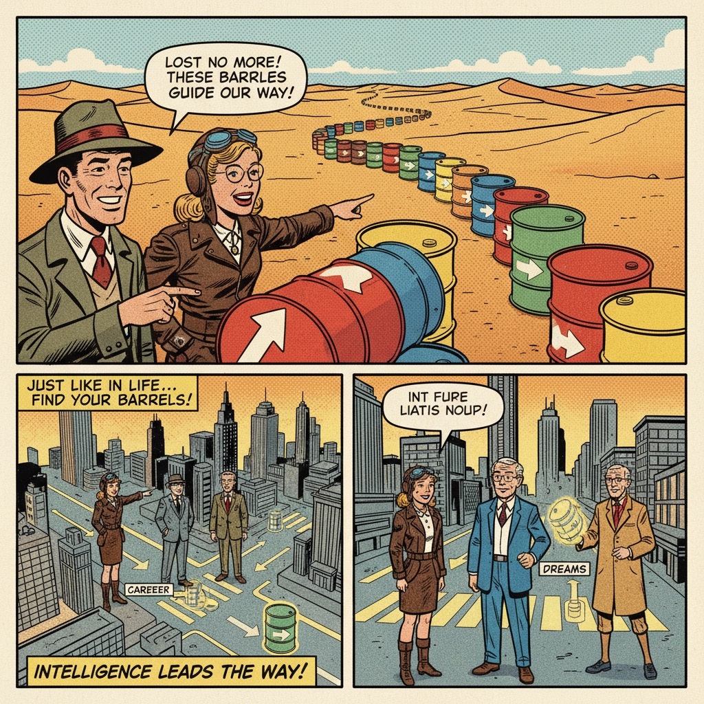 Психологи, как сэр Филби в свое время, давно заметили: люди, которые расставляют себе «бочки»-ориентиры (они скромно называют это «временнóй перспективой» и «постановкой целей»), реже гибнут в пустыне экзистенциальных кризисов. Тот, кто учится на прошлом (видит пройденные бочки), ставит цели в будущем (видит следующие) и адекватно действует в настоящем (идёт к ближайшей видимой), — не просто выживает. Он прокладывает трассу.