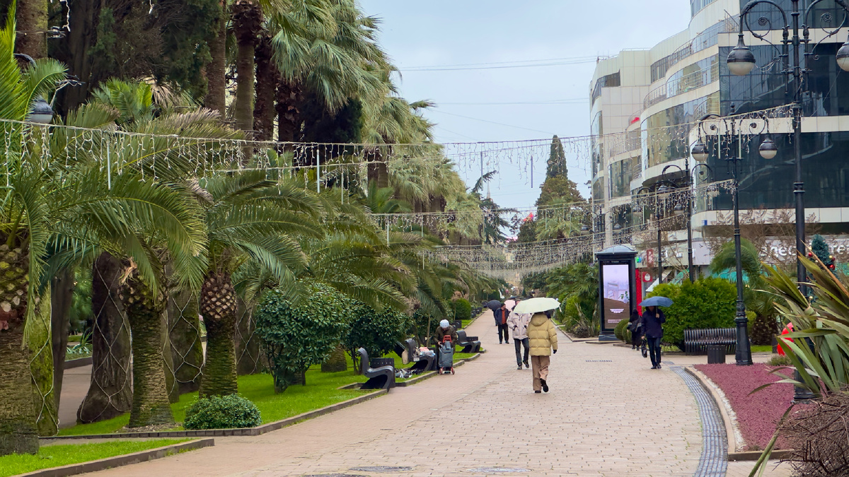 · Мягкая зима: Средняя температура самого холодного месяца (января) составляет около +6°C. Заморозки и снег — редкие и кратковременные гости, чаще в предгорьях. Основной зимний пейзаж — это дождь и +5...+10°C.