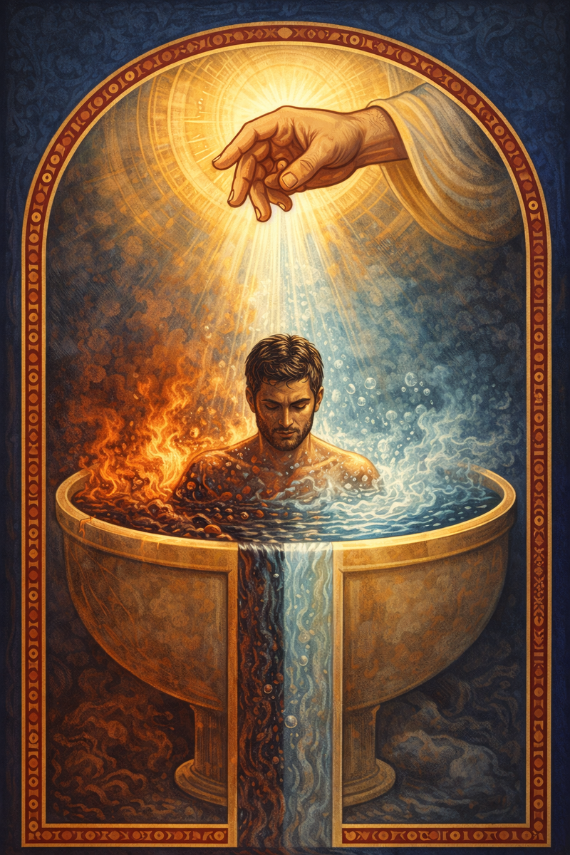 - Исход суда: Вот сердце трансформации. В ордалии исход неизвестен и зависит от твоей невиновности. В крещении исход известен заранее и гарантирован. Приговор — смерть для греха. Но он уже исполнен на Substitute — Заместителе (Христе). Поэтому, погружаясь в воду, человек не испытывает свою невиновность, а соглашается с приговором над собой и присоединяется к его исполнению на Кресте. Он умирает вместе со Христом.