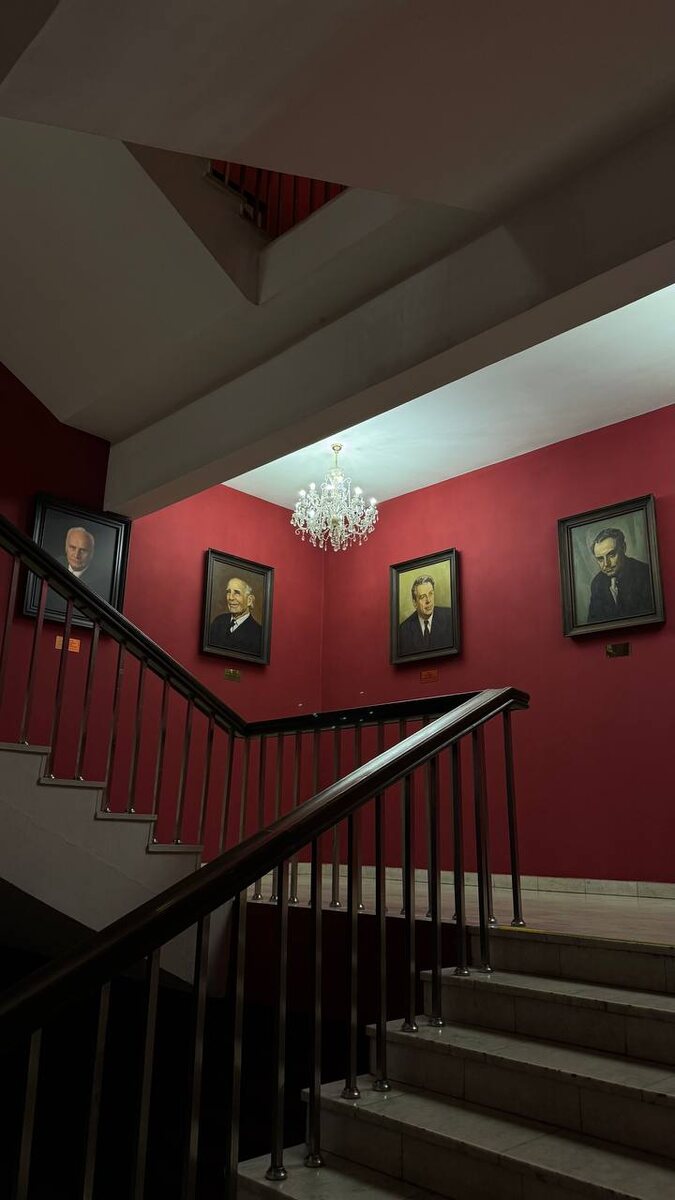 Во-первых, интерьеры. В фойе театра размещены художественные объекты, которые живут своей отдельной культурной жизнью: — гобелен художницы Ольги Орешко (1992), — деревянные барельефы мастера Вениамина Степанова. На экскурсии по театру мне рассказали, что Музей истории Екатеринбурга «охотится» за этими работами и мечтает забрать в свою коллекцию экспонатов. Во-вторых, память. На парадной лестнице театра размещены портреты артистов, ушедших из жизни. А малая сцена названа в честь заслуженной артистки театра Галины Умпелевой. На ступенях театра размещена скульптура «Спешащие на премьеру», которая изображает реальных актеров спектакля «Летят журавли». Театр мощно вписан в город, его историю, память и художественную ткань❤️🔥