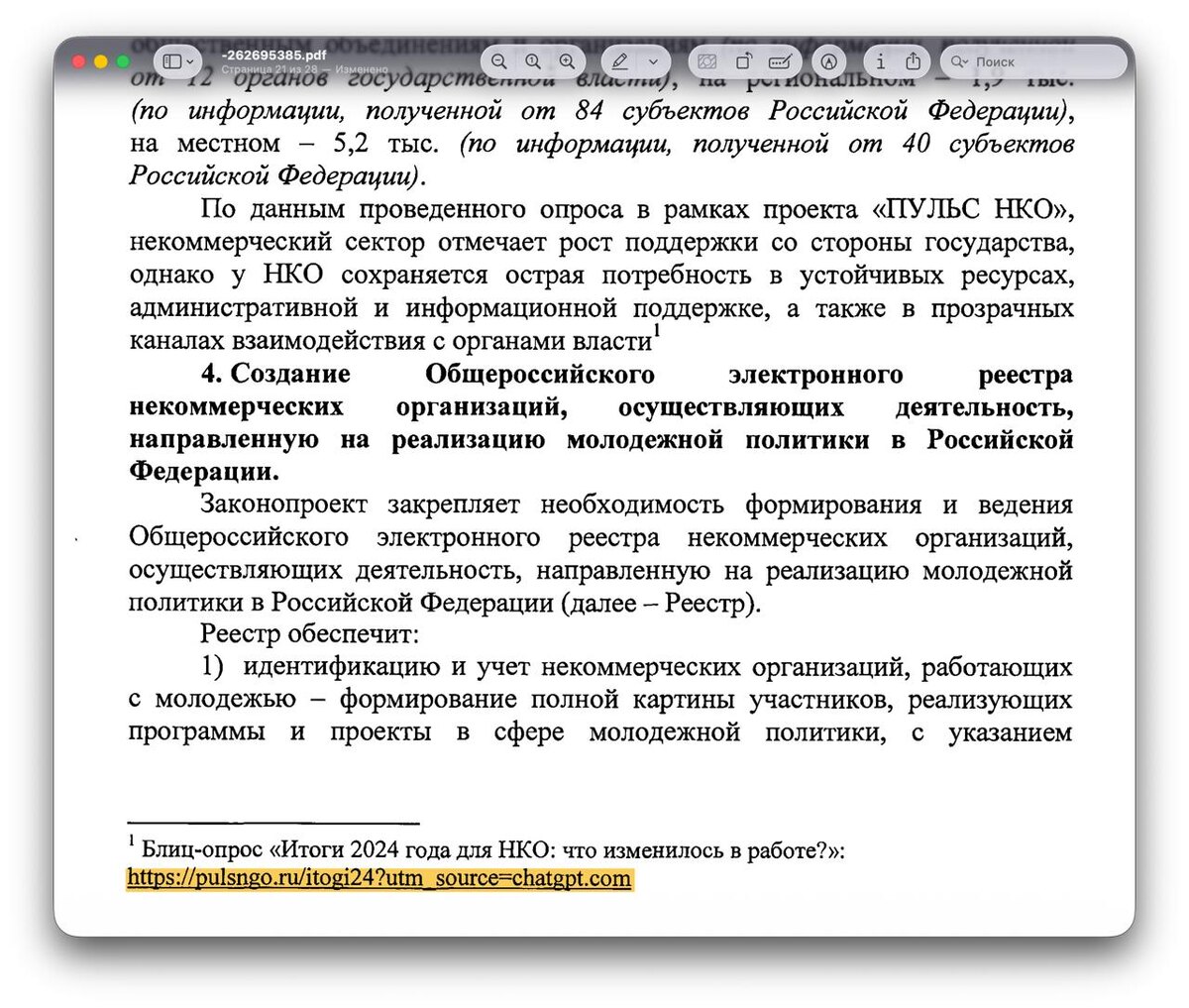 В российском законопроекте выявлена ссылка с меткой, характерной для ChatGPT. Такие пометки обычно используются чат-ботом при добавлении ссылок на источники. https://dzen.ru/id/5c0e38ff46ef5c00aaa80527