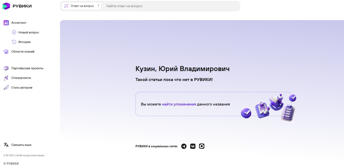 Это значит: во-первых, что статьи обо мне больше никогда не будет в Рувики; во-вторых, что, по мнению экспертов, пишущих и редактирующих статьи, - профессоров, которым я предложил самораспуститься в связи с "закрытием мной дела философии", Кузин вовсе не учёный, и нечего ему делать в русской энциклопедии...