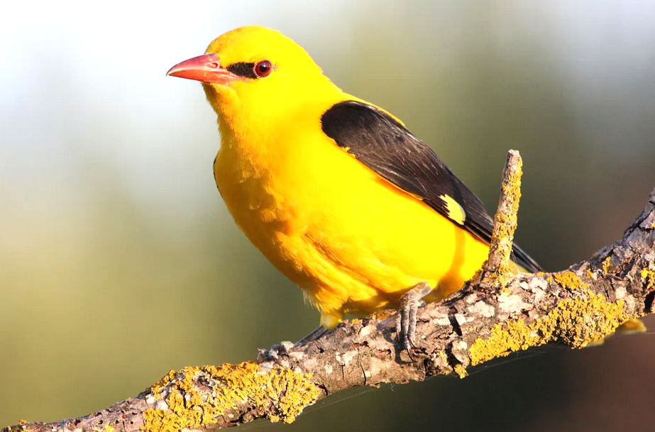 Тело: Насыщенно-желтое, почти золотистое. Этот цвет настолько доминирует, что иволга кажется маленьким солнышком, пролетающим сквозь листву.
