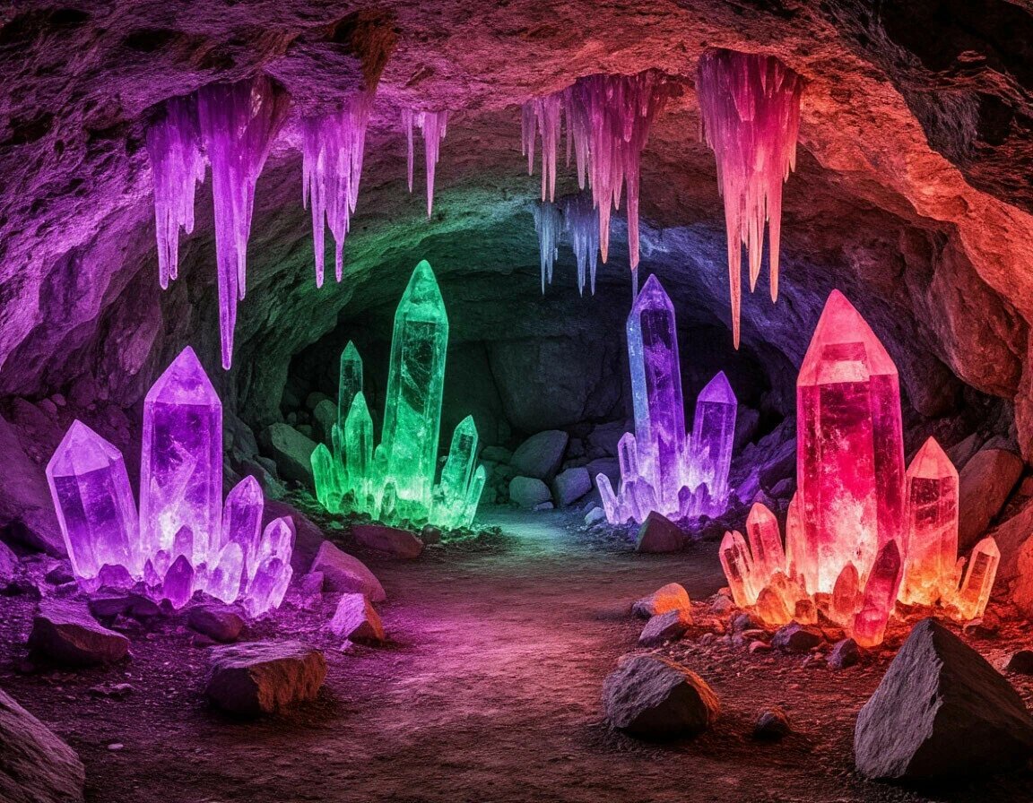 Если среди них попадётся один с мерцающей фиолетовой сердцевиной — это сокровище! Возможно, это огненный камень, веками впитывавший энергию грома, и он ценнее всей остальной пещеры.